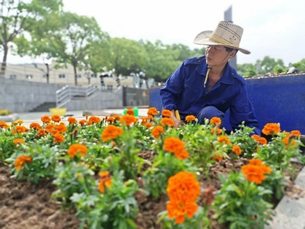经过绿化员工们的细心养护,更有适宜生长的肥沃土壤,移栽后的万寿菊开得更加旺盛。看着悉心栽培的花儿们,绿化师傅抚着盛开的花朵,眉心含笑说道:“说不定在9月开学的时候依然能装点校园环境。”经过巧思移栽,盆栽不仅可以再次装点校园环境,还能做到花开不断、香已香人。