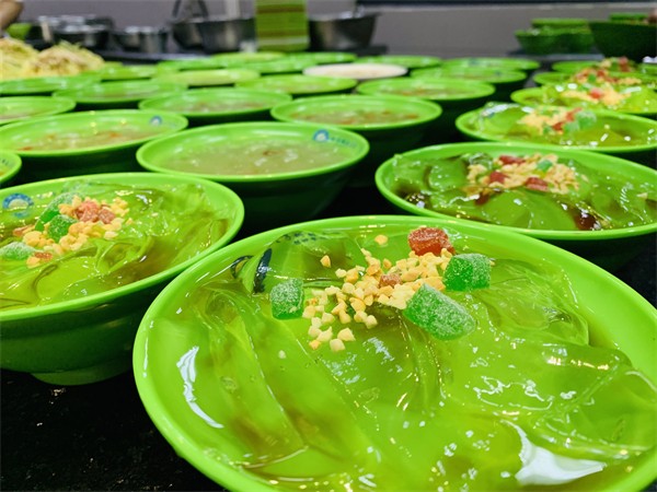 比起前期的高温,32℃已经算“降温”了,但在户外,仍然是酷热难耐。校园水站为各迎新志愿者站点送上桶装水和免费瓶装水,饮食推出夏季解暑菜品,将“清凉”送到迎新一线。