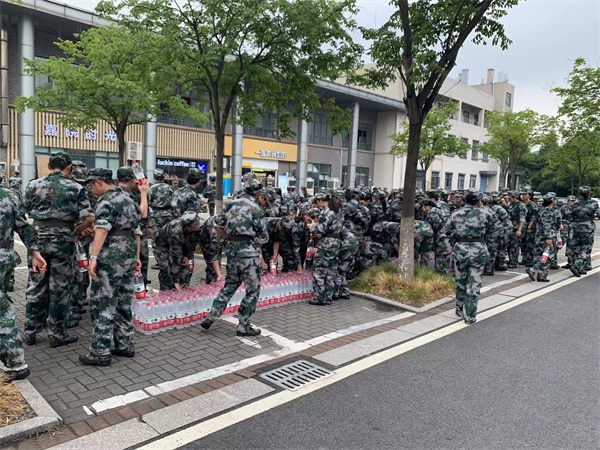 8月26日清晨,公司商贸服务部工作人员在和兴生活超市门口搭建了“军训补水站”,为新生提供清凉福利。此次夏日送清凉活动由农夫山泉公司免费向2022级军训新生提供1000余瓶1.5升的农夫山泉饮用天然水,为新生军训助力,获得了新生们的点赞与好评。为不影响新生的正常军训秩序,“军训补水站”工作人员会在学生军训休息期间,向新生军训方阵随机发放免费饮用水。