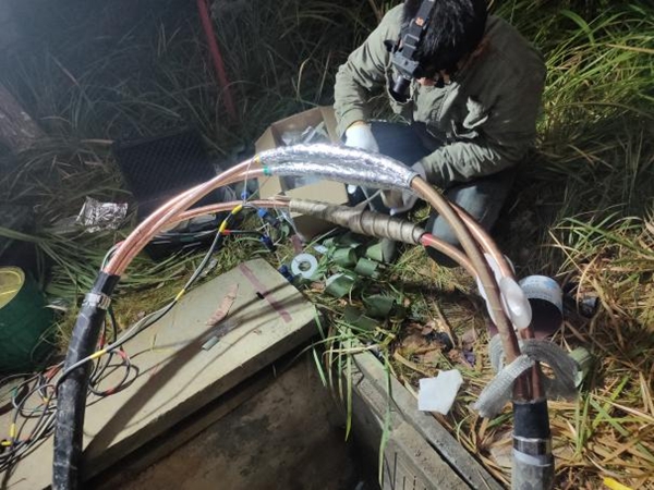 10月7日上午,湾里供电公司专业人员携带400KW大功率应急电源车及电力测试车(南昌市仅一台)入校驰援,通过电力脉冲测试将电缆故障点锁定在新建大学生活动中心工地区域,随后通过用脉冲监听、电缆截断、挖掘的方式,最终于10月7日下午5点精准定位故障点。随即,后勤保障处紧急调拨电缆、帐篷,冒着低温风雨连夜施工作业并于10月8日凌晨1:10完成抢修,停电区域恢复正常供电。