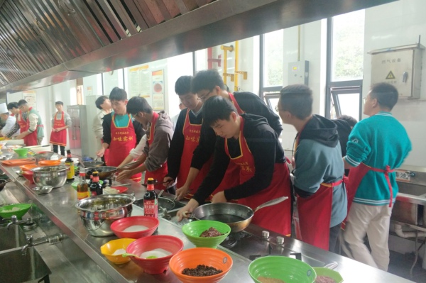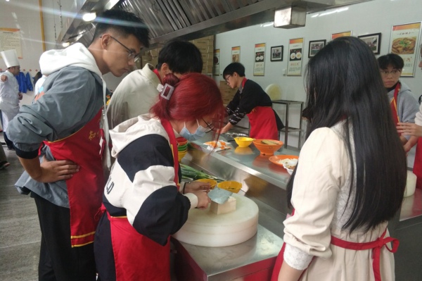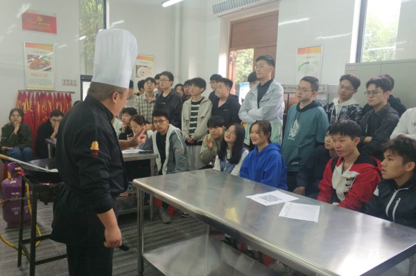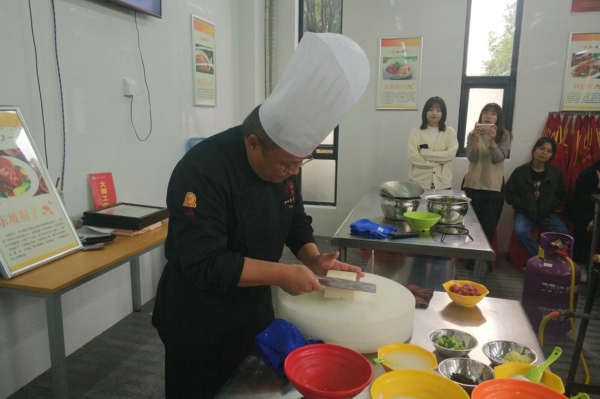 参观完餐厅,同学们便开始正式的美食探索之旅。授课老师罗恒通过简洁易懂、幽默风趣的语言,深入浅出地将理论知识娓娓道来。罗恒结合文化背景、历史典故,为同学们讲解第一节课,教授菜品麻婆豆腐的口味特点、川渝地区的饮食习俗。通过实际操作,演示制作过程和烹饪要点。在罗恒精湛的技术下,一道色香味俱全的麻婆豆腐新鲜出炉,同学们品尝过后也对自己接下来的实操充满期待。