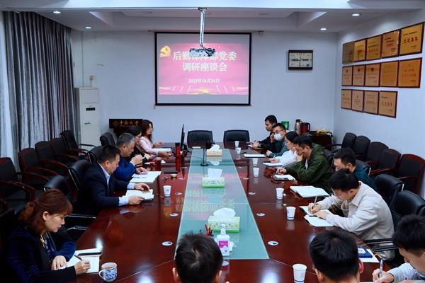 10月26日,中南大学后勤保障部党委在甘棠一栋205会议室召开调研座谈会。部领导乔硕功、陈谦、康建安出席,会议由部党委副书记、纪委书记陈谦主持。