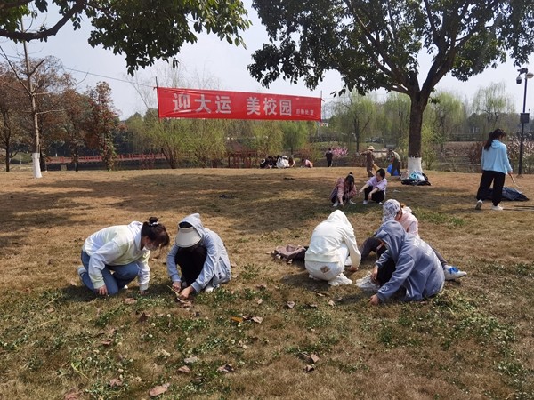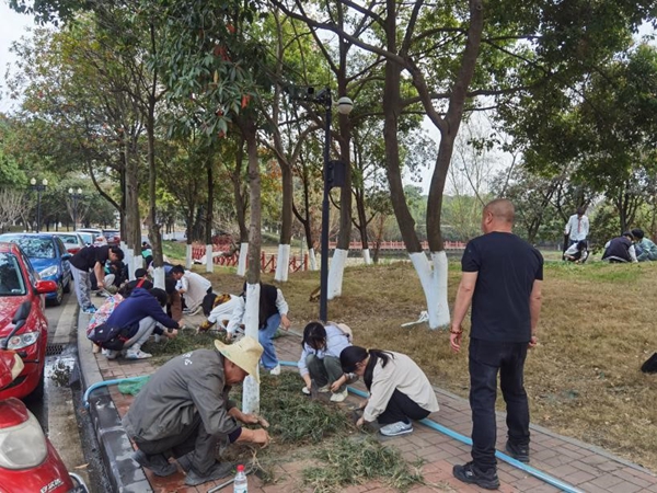 11日下午,食品工程学院任远航老师带领着150名学生,在后勤处绿化中心的安排下,来到了鹤鸣湖周边。种植麦冬、清除杂草、清理落叶、浇水养护,以实际行动守护校园的一片“绿”,为绿充“植”。