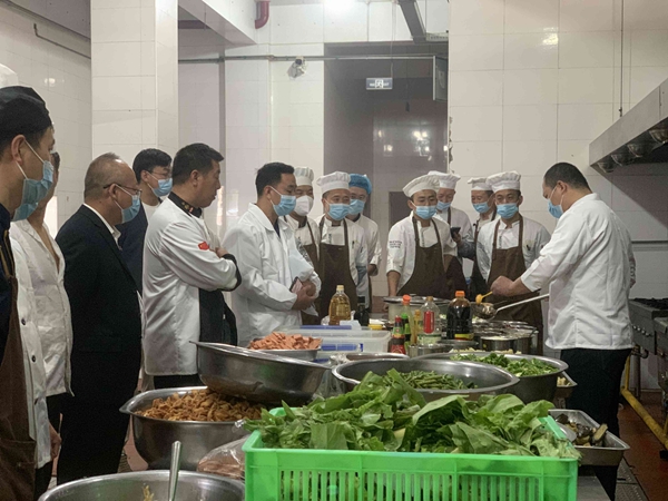 和家和餐饮管理有限公司管理人员首先对学校食堂进行了参观,对后堂内部设施、冰箱内半成品的摆放、粗加工间蔬菜的处理及各厨师现场的加工进行了指导。随后各食堂经营户带领所有厨师在四楼食堂观看了和家和厨师长的现场展示,对菜品制作过程中火候的掌握、调味品的选择、菜品的颜色处理及出锅的摆盘进行了详细的交流。最后,各食堂负责人及厨师对和家和厨师长展示的菜品和食堂现有菜品进行品尝对比,在品尝中对自己的疑惑问题和平常加工中自己遇到的问题进行了现场答疑。