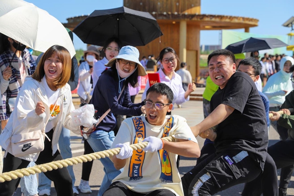 为给本次参与捕鱼收网活动的同学们热身,校区组织毕业生们以学院为单位举办拔河比赛,获得冠军的队伍将获得本次捕鱼节的“鱼王”。