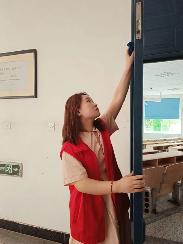 教室组的志愿者们来到了第四教学楼,在教室进行了清洁地面,擦黑板、课桌、窗户,清理抽屉垃圾等工作,并对乱扔垃圾的同学开展了教育劝导。在大家的努力下,教室变得整洁卫生,教学区域窗明几净,同学们的成就感油然而生。