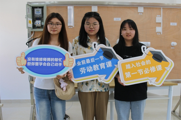 课后,外语学院的孔同学、公务学院的蔺同学纷纷表达了对安排这堂劳动教育课的感谢和感动:“大学四年,每次遇到生活难题,总是习惯性拨打‘5730’的报修电话,这个电话守候了我们大学四年的生活。今天,电话那头的师傅教会了我们居家生活中最需要的几项技能。我们有信心,即便没有维修师傅的24小时响应,我们自己也能行!” “这是我在母校的最后一堂劳动课,家庭电器的维修知识很实用,谢谢后勤的老师们为我们准备这么给力实用的劳动教育课,这些技能都是我们需要掌握的,学会自己动手比什么都强。”