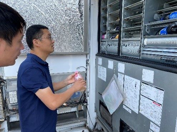 对校园自动售卖机运行情况进行检查,清洗机器、更换产品,确保师生购买新鲜、安全的产品。