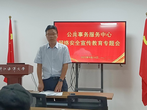自学校秋季开学以来,网络安全宣传和防范电信诈骗工作也已紧密围绕平安校园建设推进。根据学校《关于组织开展2023年网络安全宣传周活动的通知》精神,9月14日下午,中心于浙江海洋大学新城校区教工食堂329会议室、定海校区各部室办公室分别组织开展了网络安全专题学习活动。中心领导、全体管理岗人员参加学习,中心主任张宏波主持活动。