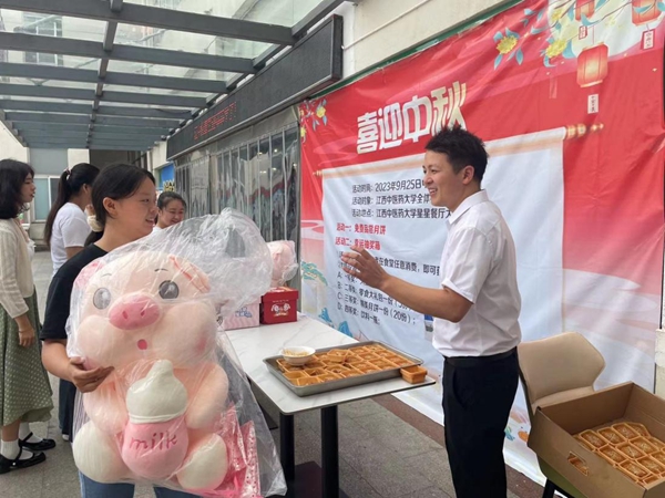 本次活动,后勤精心筹办,一是各校区餐厅准备了口味多样的月饼、水果等供师生免费品尝,同时部分餐厅准备了抽奖互动活动,同学们踊跃参与,在校园里感受到了节日的氛围。二是后勤为全校22000余名在校师生每人准备了10元免费餐券,在26日当天精心备餐,让大家吃到美味可口的饭菜。三是举办了“猜灯谜、赢餐券”活动,传统灯谜结合耳熟能详的中药材名,吸引了众多同学们踊跃参加,现场人气爆棚,场面十分热闹。