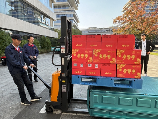 节约人力成本。电动叉车演练环节,一托盘的货物已就位,员工提前检查完叉车有无异常情况之后,操控前方换向手柄,仅用了5分钟,毫不费力地就把这批货物平稳地运送到了三轮车上。据相关负责人介绍,这台叉车在本次亚运保障中就已经大显身手,运送了近万箱水,在员工人手不足,场馆各领域需求点分散,搬运需求量大且时间紧迫的情况下,这台叉车的投入,无疑是对物流工作最大的支持,它不仅节约了人力成本,还大大加快了物资周转速度,提高了服务对象的满意度。