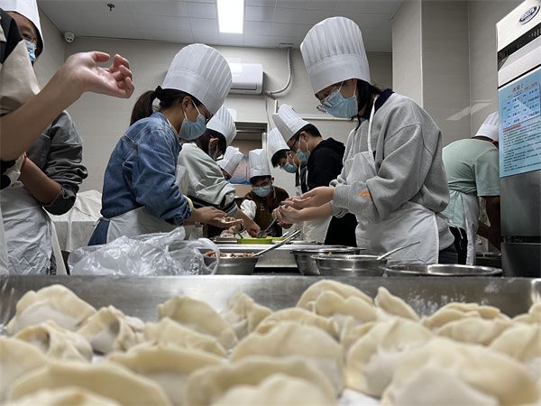 在制作水饺环节,同学们热情高涨、积极参与。有的同学包水饺过程非常娴熟,有的同学则表示这是自己第一次亲手包水饺,不仅体会到了劳动的快乐,而且尝到了自己亲手包的饺子,感觉非常有意义。