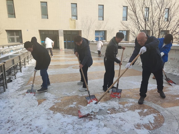 12月18日下午至12月19日上午,江苏护理职业学院后勤保卫党总支组织党员干部、广大职工在科技路校区、黄河路校区开展了清雪除冰行动。在大家的不懈奋战下,通往教学楼、学生公寓、办公楼、食堂楼、后勤楼、医务室等重要场所的所有路段均已完成冰雪清扫和撒盐作业,切实保障了全校师生的安全通行,有力展现了后勤人在“急险难”任务中能够冲得上、完得成的良好工作风采。驻校物业公司人员等外包服务单位人员给予这场行动以有力的配合,发挥了重要作用。以下为现场图片: