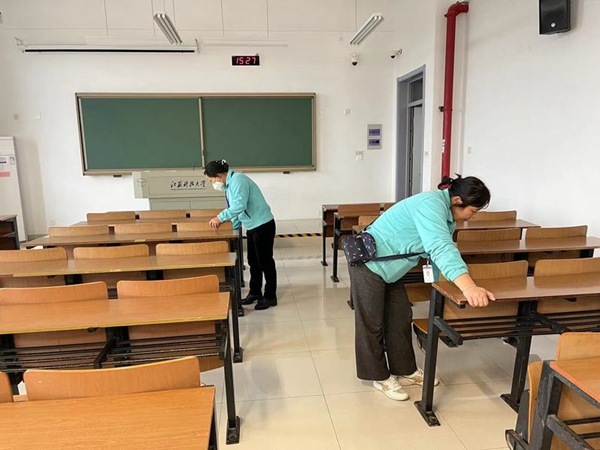 考试结束后,物业中心组织员工将所有考场桌椅归位,确保第二天教学楼各教室的正常使用。通过全体员工的齐心协力、相互配合,圆满完成了本次全国英语四、六级考试的后勤保障工作。