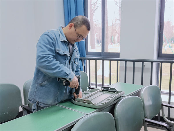 维修服务中心提前巡视检修教学区、宿舍区、办公区等公共区域的开水器、公共照明、卫生间等,对会议室、教室座椅板凳等进行维护,营造良好的教学环境,让师生“心无旁骛”地工作学习。