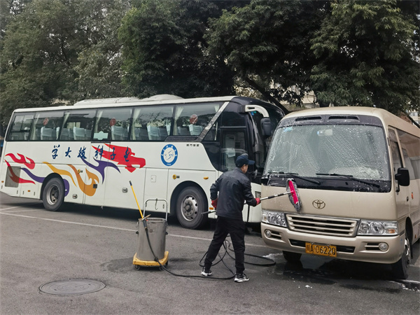 交通运输服务部的师傅们铆足了干劲,将驾驶的车辆打扫得干干净净,仔细排查轮胎、油液等,学习交通安全警示教育视频,牢记“手握方向盘,绷紧安全弦”的服务理念,在乘车点准时出发。