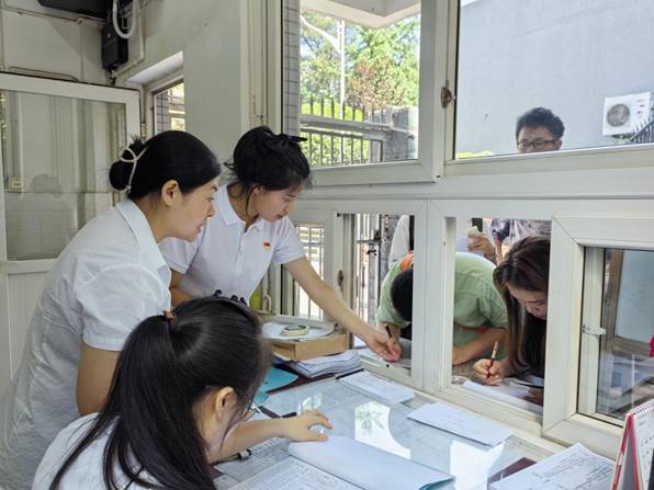 贴心服务,便捷离宿。为方便毕业生办理离宿手续,公寓服务部主动作为,靠前服务,在毕业生楼栋下设立了“毕业生公物退还点”,为毕业生提供了方便快捷的服务。工作人员耐心细致地解答毕业生的疑问,协助他们办理离宿手续,回收寝室钥匙等物品。