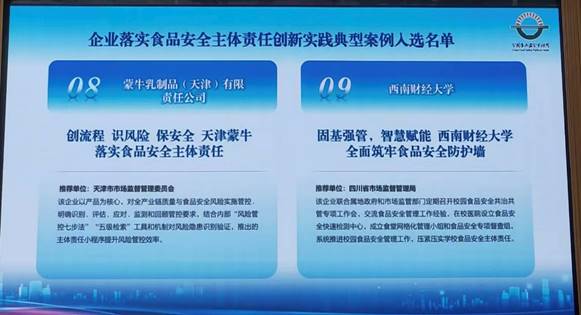 10月31日,落实企业食品安全主体责任经验交流会在国家市场监督管理总局举行。会上发布了经各省级市场监管部门初评、国家市场监督管理总局复评和终评的企业(单位)落实食品安全主体责任创新实践典型案例。全国总共评选25个单位,西南财经大学《固基强管,智慧赋能,全面筑牢西南财经大学食品安全防护墙》案例成功入选。6家企业(单位)在大会交流落实食品主体责任创新经验做法。西南财经大学党委常委、副校长史代敏出席会议,并代表学校在大会进行交流发言。