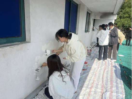 11月4日,浙江财经大学东方学院后勤基建部联合学生工作部开展墙体粉刷劳动实践课堂。
