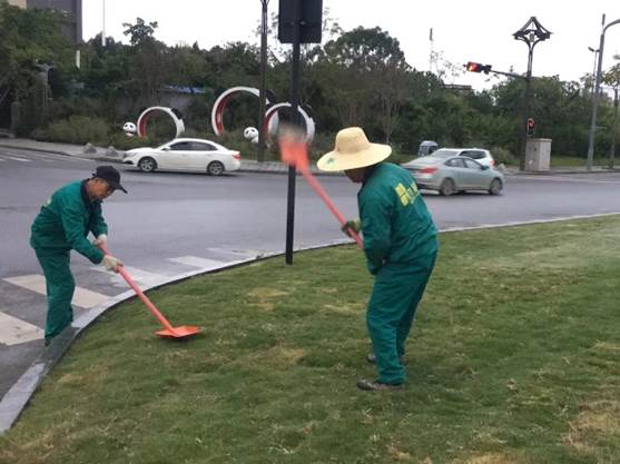 前期工作完成后,大家迅速投入到了各自的工作中,铺设草皮、拍实草皮、浇水养护,通过井然有序的工作方式,高效快捷地完成了草皮铺设工作,并对所有铺设区域开展现场收方工作,以确保草皮数量准确。