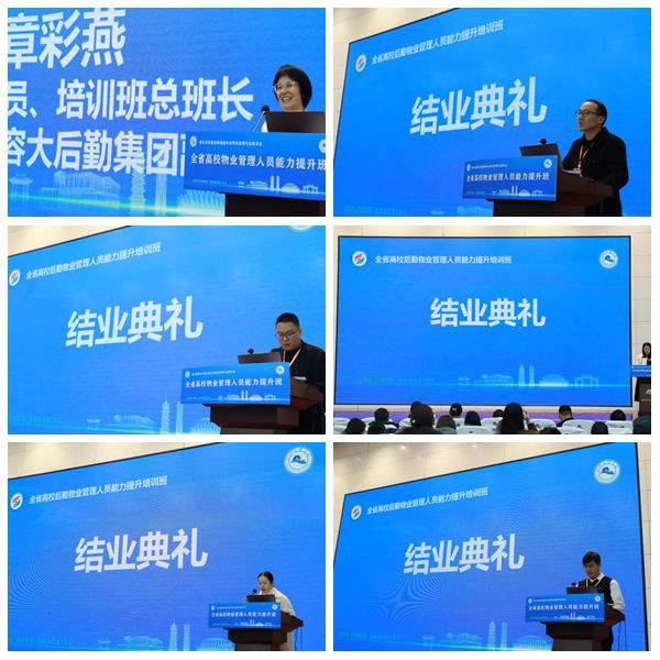 协会物专会副主任、中国计量大学后勤服务中心主任王勤,协会物专会委员、丽水学院后勤服务中心主任朱宇阳,协会物专会委员、浙江工业大学容大后勤集团副总经理章彩燕、协会物专会执行秘书、杭州电子科技大学后勤服务中心物业服务部主任王术海,绍兴文理学院后勤管理处副处长宋凡广先后主持了开班仪式、授课、结业典礼。