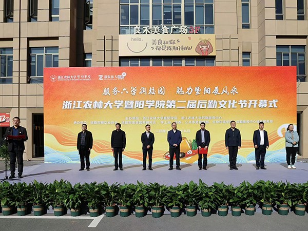 近日,浙江农林大学暨阳学院第二届后勤文化节开幕式在暨阳学院二食堂广场举行。校党委委员、副校长胡祖吉,暨阳学院院长徐光辉,后勤中心主任、党委书记陈审声,诸暨市餐饮业协会会长斯华民以及后勤中心、暨阳学院相关部门领导等参加开幕式。