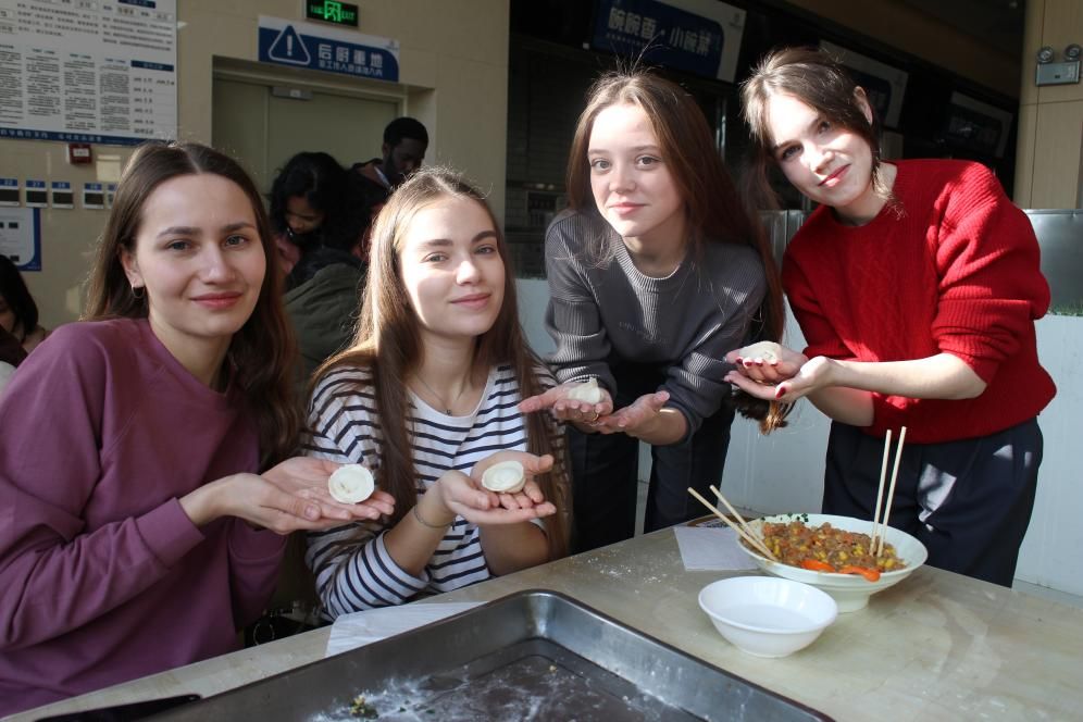 本次特邀中国地质大学(武汉)—— 俄罗斯伊尔姆国立科研理工大学“一带一路”菁英之旅冬令营学员和国际预科生共45名来自二十几个国家的学生一同开展结对领航包饺子活动。