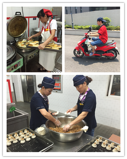 凌晨两、三点的夏夜大家都还在香甜的梦想,但此时食堂后场的灯早已亮起,肖师傅、张阿姨他们已经在为师生们的早餐而忙活张罗着,食堂新的一天也在此时拉开了帷幕。包包子、蒸馒头、煮稀饭、摊煎饼……虽然经过前一天的辛劳只休息了短短五、六个小时,但是他们个个动作干净利索,工作有条有理,丝毫看不出疲惫。当早上六、七点钟学生们揉着朦胧的睡眼,来食堂为全新的一天“充电续航”之际,食堂全体员工已经开足马力,为大家一天的用餐问题忙碌多时。
