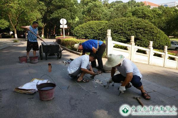 短短一个月暑假的时间,修建服务中心共计完成维修2500余次,应急抢修126次,全面检修学生宿舍共计1700余间,维修更换路灯、景观灯共计405盏,粉刷补整墙面8000平方米,屋面防水处理16处,更换米塔尔、多功能前坪、一办公楼、特冶楼等地方的地面砖、沟盖板、麻石板等260余处,圆满完成各项任务,为老生搬迁、新学期开学、新生入住做好了充分的准备。