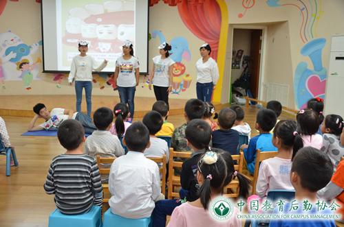 9月20日是“全国爱牙日”,为增强幼儿爱牙护牙意识,丰富幼儿护牙健康知识,北京交通大学后勤集团幼儿教育中心围绕9月健康教育主题“宝宝的牙齿”开展了一系列宣传教育活动。活动内容包括:在幼儿园张贴“爱牙护齿”宣传海报,让家长和幼儿了解牙齿保健的重要性;根据各年龄班幼儿特点,通过儿歌、故事、舞蹈、律动等多种形式组织一系列牙齿保健教学活动,培养孩子形成良好的健齿习惯;保健室为中、大班幼儿展示自编自演话剧《宝宝的牙齿》,生动形象的介绍人体牙齿的外形特点、功能及护齿方法。