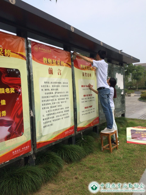 综合服务中心配合校内部门学院做好开学图文制作张贴工作。图文制作团队的全体员工加班配合学校、校内部门、二级学院做好 “十佳新秀教师风采榜”的排版制作及张贴工作、为钱江学院教学部安装教室名人名言牌、制作及粘贴迎新海报、排版及制作迎新展架、宣传单和服务卡等。(通讯员 薛晓枫)