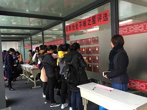 活动由监控部牵头,对2015年11月至2016年10月期间拾金不昧表现突出的后勤在职在岗员工进行评选。活动开展以来,得到了广大师生的关注。根据集团各部门推荐,结合后勤师生生活事务中心失物招领数据,监控部邀请了校学生生活自律委员会的学生干部、学生监控员评选出20名 “拾金不昧之星”候选人进入投票环节。根据后勤网站、后勤微信等网络渠道投票和师生现场投票情况,经集团领导班子评定,评选了陈卫君,李芳云、丁连娇等10名员工为后勤服务集团第九届“拾金不昧之星”,并进行了表彰。