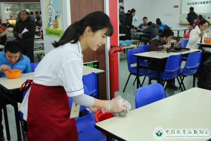 在食堂这样一个充满烟火气息的地方,常见的是人来人往。在碗筷碰撞的声音中,志愿者们回收不断到来的餐具;在交错排列的行间中,志愿者们认真地擦拭桌椅。其中一个志愿者这样说道:“不亲身体验食堂清洁这个项目,我永远不知道在大家吃饭时,自己饿着肚子又忙到不可开交的叔叔阿姨有多辛苦。”