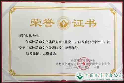 据悉,2016年高校后勤系统开展后勤文化建设评选推广活动是首次组织实施,旨在探索新时期学校后勤思想文化建设的新理论、新方法和新途径,及时总结相关高校在后勤文化建设方面的先进经验,推动高校后勤工作由传统向现代的转型升级。自今年6月份组织评选以来,经全国2000多所高校参与、近100所高校书面申报、22所入围高校现场汇报、专家组组织评选,我校从众多的985、211等知名高校中脱颖而出,获全国“高校后勤文化建设先进院校”荣誉称号。