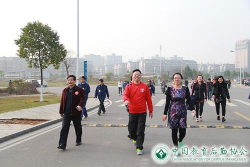 年轻的姑娘小伙们健步如飞,你追我赶;更多的人们是迈开大步,边走边聊。大家欣赏着新校区美丽的景色,享受着紧张工作之余难得的放松惬意,在欢声笑语中交流着各自的工作、生活、学习情况。
