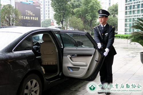 如今张师傅可以算是项目上的老保安,他会对新人进行培训,传授自己的经验。他向我们展示了培训的案例:指挥车辆时要双手向前,之后与地面成90°角缓缓挥动,当汽车到了指定地点后,双拳紧握不动。给汽车开门的顺序也有讲究,后门右、后门左、副驾驶、司机。就连开车门也有程序,左手拉车门,右手扶门框……