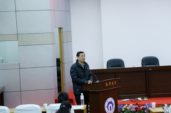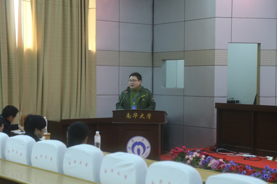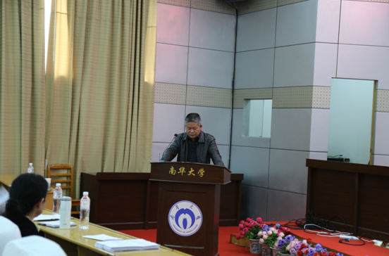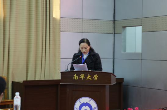 后勤服务中心主任陈柒叁主持大会并作述职述廉报告