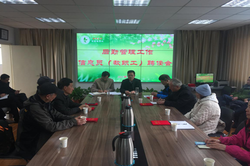 为更好发挥后勤支撑保障能力,提高后勤服务水平,拓宽师生员工对后勤服务管理工作反映渠道,质量运行与安全管理科分别于3月15、16日下午2:30在M302会议室召开第四届后勤管理工作信息员表彰暨聘任会议,会议由质安科吴长顺科长主持,后勤党委陶春明书记、后勤保障处毛连军副处长出席会议并讲话。