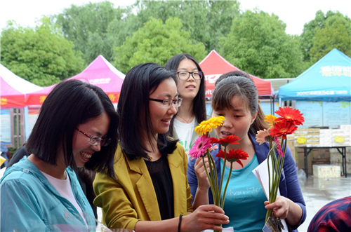 在绿色食品优惠展销点,有各类绿色农副产品供师生选择,既健康又实惠;学生可以现场书写家书,由工作人员帮忙给爸(妈)这封来自东方的“家书”;绿植摊位前,挤满了人,大家争相挑选着自己喜爱的植物,一名学生拿着捕蝇草,开心地说:“这下再也不用怕宿舍里的蚊子了,可以睡个安稳觉啦。”