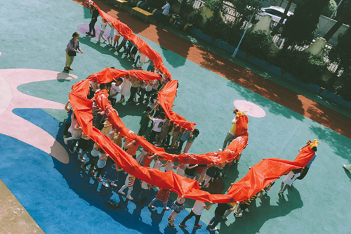 此外,中班幼儿则开展了一场“舞龙”的庆祝活动。“嘿!嘿!嘿!”在稚嫩嘹亮的呐喊声和铿锵的“锣鼓”声中,各班老师带领小朋友整齐地挥舞着手中的长长的红布,小朋友在后面双手拉着!老师戴着龙头,活像三条龙在比赛呢!接着,还邀请家长给孩子们额头上用笔写上“王”,以表示驱赶蚊子的寓意!