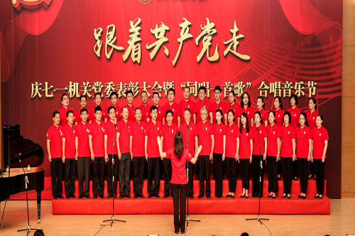 6月21日下午,跟着共产党走——庆“七·一”机关党委表彰大会暨“同唱一首歌”合唱音乐节在逸夫会议中心举行,来自中国人民大学机关党委31个支部的19支代表队参与本次音乐节,中国教育后勤协会秘书处党支部与中国人民大学校办党支部携手参赛。