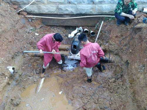 6月10日早上7点,水电管理科工作人员立即采取关闭该区域地下自来水管道阀门、凿开地面对该区域地下自来水管道进行查看,发现是该区域地下供水主管道腐蚀严重从而出现管道爆裂跑水现象。根据现场情况,为减少跑水量避免水资源的浪费,后勤保障处相关负责人快速制定抢修方案并组织工作人员开展相应抢修工作,首先关闭学校泵房和各处自来水总阀门,将各主管道内的自来水进行逐一排空,用专用材料将爆裂处进行连接和紧固,然后相继启动学校深水井和相关自来水总阀门,对学校各区域恢复自来水正常供水。