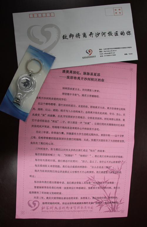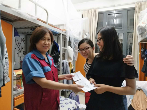 为了给搬家学生心中留下一份美好的回忆,给曾在沙河校区居住的学生一份温馨的祝福,昌欣物业自6月中旬就开始联系制作小礼品,并于7月3日由公司30余名行政和一线员工奋战一夜,将小礼品连同撰写、多次修改的一封信:《淡淡离别忆,脉脉暑夏思——至即将离开沙河校区的你》一起封装,由宿舍楼管员分发给所有即将离开沙河校区的学生,做好细致、周到的服务。收到小礼物后,学生们深表感动,在“财大昌欣物业”微信公众号上与物业工作人员互动,亲切称呼物业为“昌欣爸爸”,表达“惊喜”之情和不舍离开沙河的“宝宝们”的惜别之意。学生们的反响也让物业人感到大家庭的温暖,增强了员工服务师生的热情。