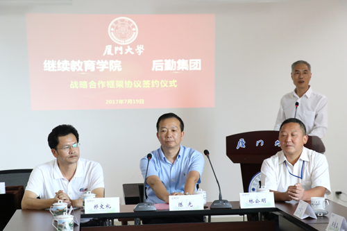 时值仲夏,喜庆连连。自2016年被中物教育授予高校后勤实训基地以来,厦门大学后勤集团及下属南强物业服务有限公司一直致力于提升基地综合实力,做好行业培训、实训的输出准备。经过长达数月的调研与商讨,征得了继续教育学院的大力支持,学院与后勤集团就战略合作框架协议已达成一致,为打造双赢可持续发展而携手共建,在培训、会议、餐饮、运输、印刷等领域开展长期合作,7月19日,双方共同举办了签约仪式,仪式在厦门大学翔安校区继续教育大楼A203会议室举行。