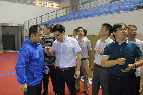 在比赛场馆,李俊峰现场了解了场地各项准备工作,与相关负责人进行交流,就后勤保障的相关方面进行了安排和落实,同时对校园绿化、车辆服务、交通保障等进行了指导。