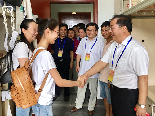 报到当天,校领导们亲临迎新点,走访学生寝室看望新生们及其家长,并与新生们亲切的交谈,了解新生们的情况,表达了学校对新生入读宁大的热忱之意。