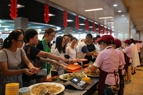 迎新当天,各餐厅延长了早、中、晚餐的供餐时间,并为新生及家长提供临时休息场所、提供降暑饮品绿豆汤等饮品;餐厅入口处张贴的横幅等迎新宣传,营造了温馨的就餐氛围;在菜肴品种上,食堂不仅注重营养安全,还做到合理搭配荤蔬,确保菜肴口味。这学期新开设的植物园校区西餐厅、本部的美食每厨以及“喂!果园”也给了师生们更多的选择。不管你从哪里来,带着什么样的憧憬,味蕾刻下了什么味道,宁大餐饮人始终以饱满的热情、周到的服务为来自五湖四海的同学们带去家的味道。