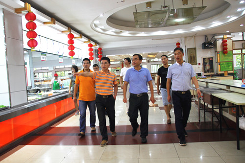 张根福一行实地走访了杏二餐厅、新桃源女生公寓、车队、商业街、校园快递中心站点等场所,详细了解了各中心(公司)近期工作开展情况、目前存在的困难及迎新筹备等工作。张根福要求集团各中心(公司)一如既往重视食品安全与生产安全,做好吃、住、行、商及电力供应等各方面后勤工作,为新生开学提供切实的后勤保障。