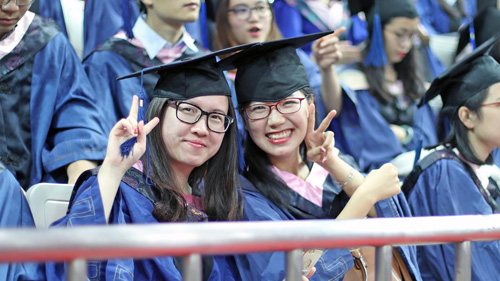 学位授予仪式现场的学生:毕业了,开心
