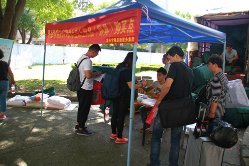 采供服务中心根据饮食需要,及时采购所需饮食原材料,保证食堂伙食供应,并组织正规商家,在3个迎新点设置了新生床上用品(卧具)购买点,给未预定卧具行李的新生提供简洁、方便的服务。